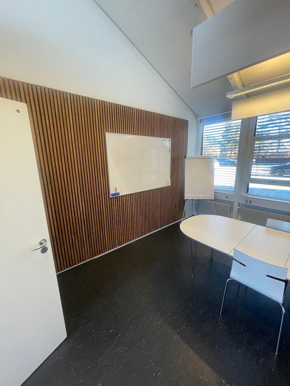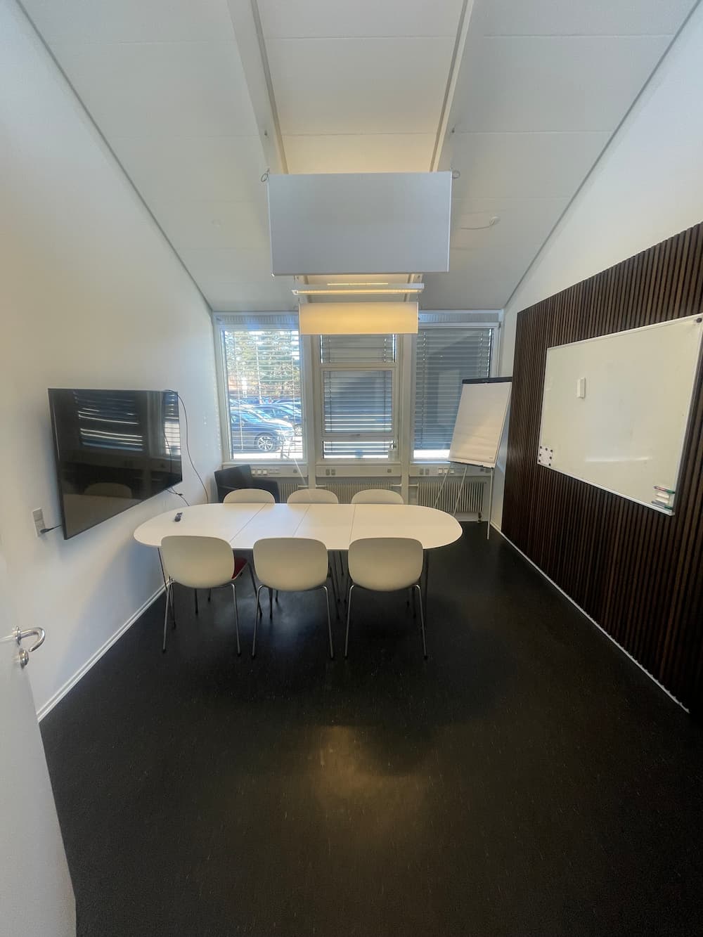 På Gymnasievej 21 finder du fire moderne mødelokaler med plads til 7-8 personer. I mødelokalerne finder du en stor skærm du kan koble dig på via HDMI eller Bluetooth, Whiteboard tavle, samt en flip-over - kort sagt, alt hvad du skal bruge, hvad end der er tale om kundemøder, præsentationer eller workshops for medarbejdere.